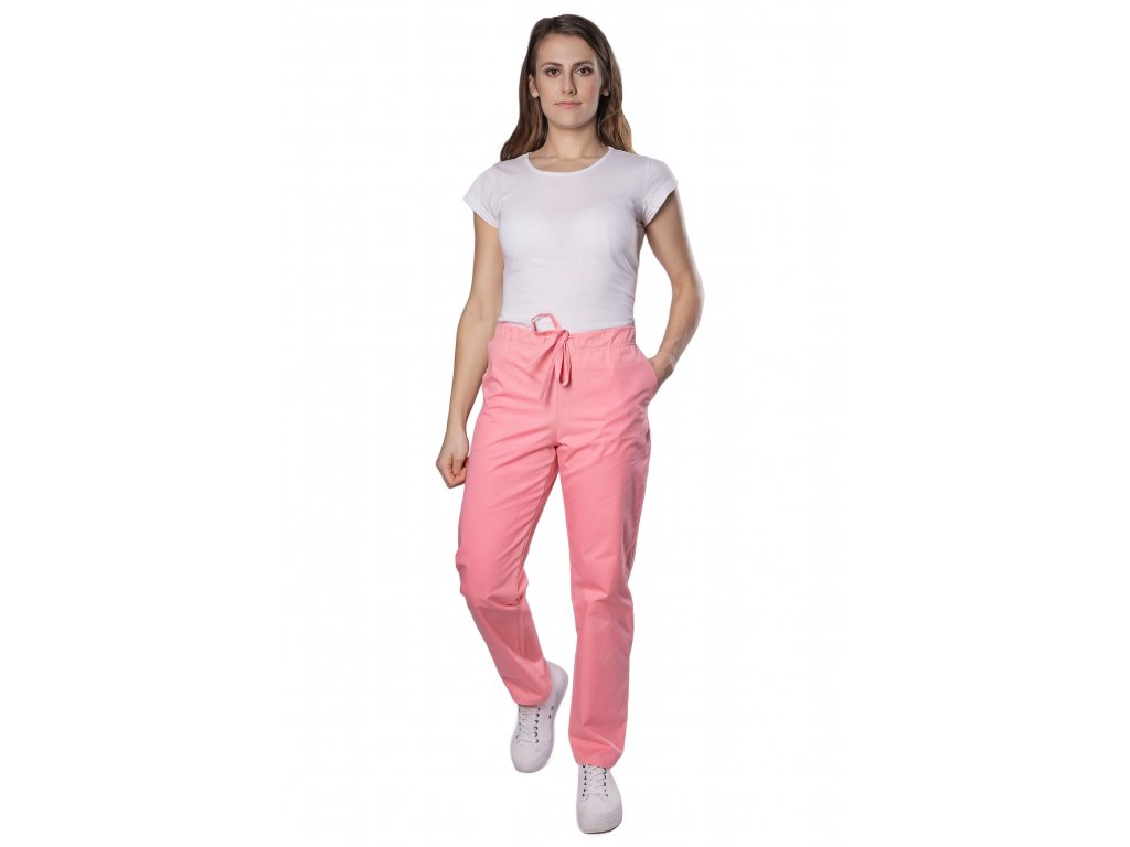 Praktické růžové kalhoty klasického střihu ze stoprocentní bavlny.