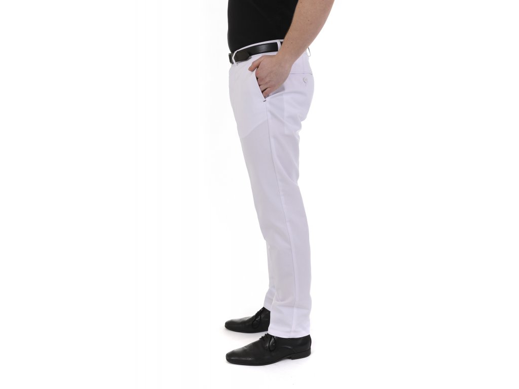 Kvalitní skvěle padnoucí kalhoty přesně pro Vás! Vysokogramážové, designové kalhoty s černými detaily, profesionální vzhled.