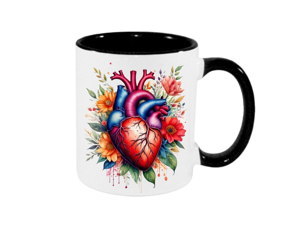 Anatomické srdce obklopené květy – symbol síly, empatie a lidskosti.
